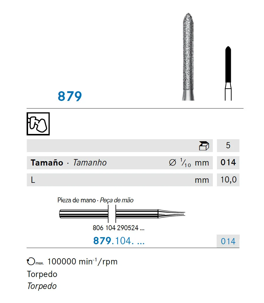 879.104.014 KOMET DIAMOND TORPEDO HANDPIECE CUTTER ø 014 – 5 units