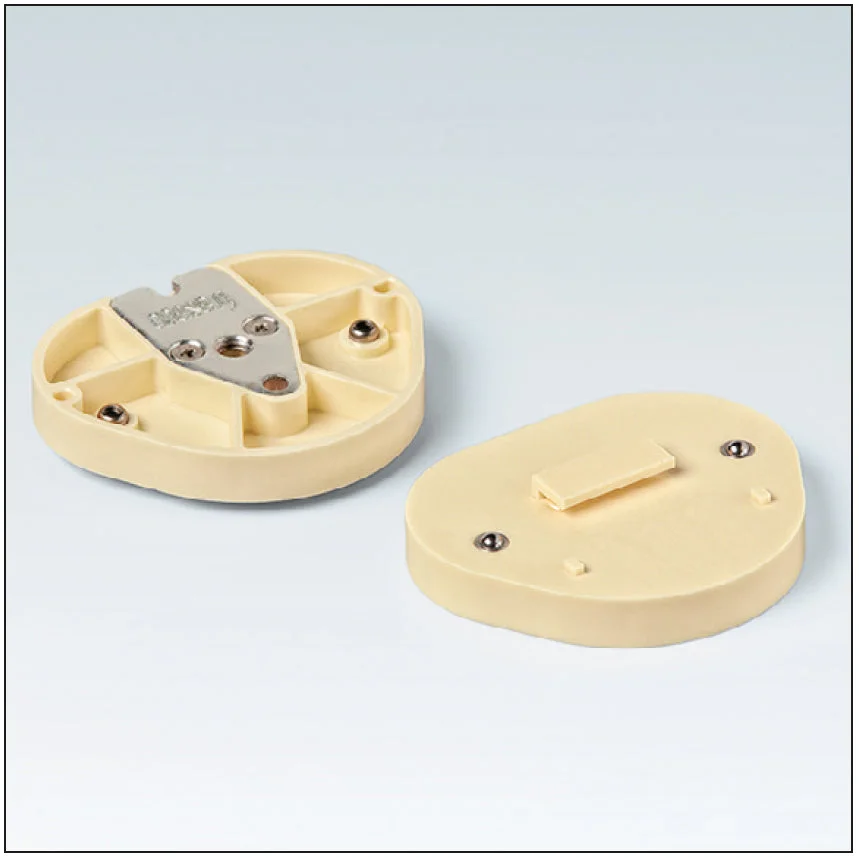 Snap-on baseplates with guide for mounting AK6 and KAVO infant denture models on the Frasaco headplate. Replaces previous baseplate models AK62S, AK62SK, and AK62SMS.