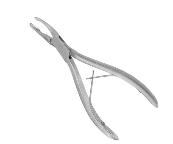 Cleveland gouge forceps #4 14 cm. For trimming alveolar bone or modifying its contour and for removing large fragments of tissue.