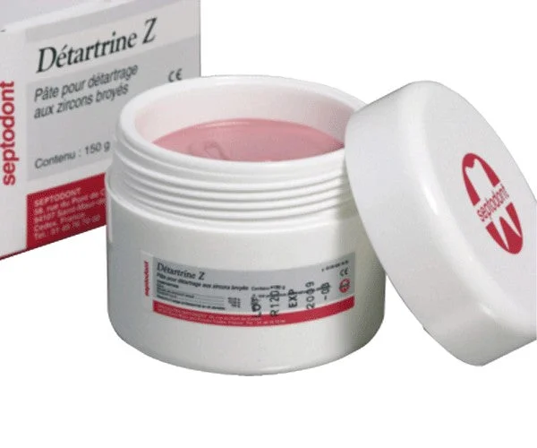 Pink abrasive paste for use in prophylaxis to remove stains from beverages, food, or tobacco and to polish tooth surfaces. With Zirconium.