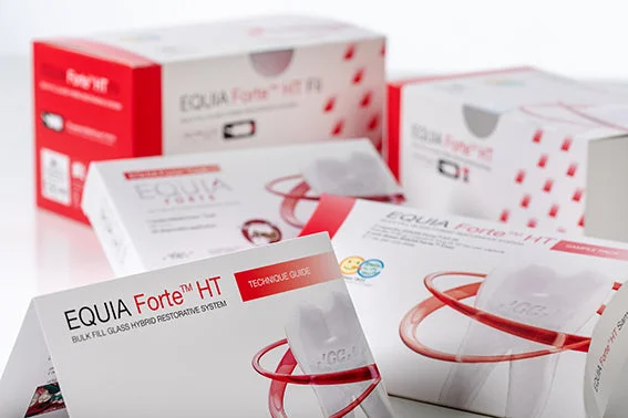 Hybrid glass restoration system for bulk fillings. For long-term restorations in load-bearing Class II cavities. This restoration system combines a high-viscosity glass ionomer with a unique protective varnish. Equia Forte HT now has perfectly matched translucency for even better-looking posterior restorations. Proven long-term performance.