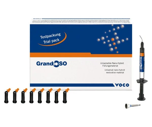 Grandio®SO – the new nano-hybrid, universal filling material for all cavity classes. For anterior and posterior restorations, core build-ups for crowns, and for the fabrication of composite inlays. Easy to polish and the shine is long-lasting. Composed of: syringes of shades A2, A3, VCA3.25, A3.5, and VCA5, and a shade guide.