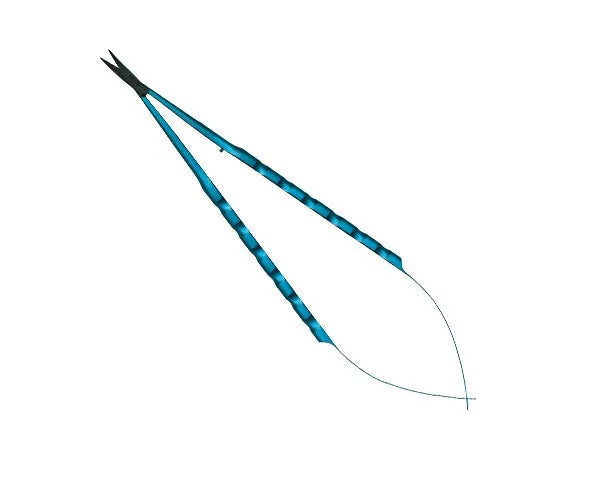 SinusLine titanium microsurgical scissors, curved, 18 cm, European handle, pointed tips. Primarily used for cutting sutures, and occasionally for controlled incisions in soft tissue. The rounded handle facilitates