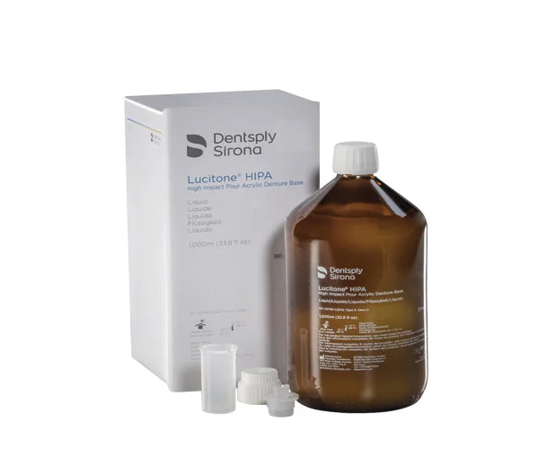 High-performance self-curing resin. For complete and partial dentures, implant-supported prostheses, repairs, and relines. Advantages: high strength for exceptional durability and fracture resistance, outstanding color stability, and excellent fit. Clear liquid.