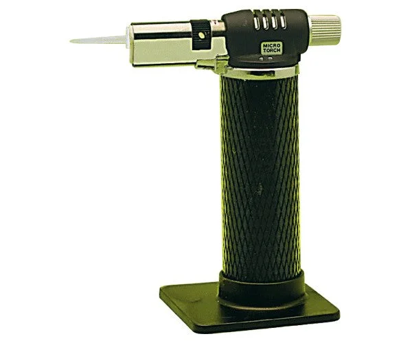 Ideal for welding small parts due to its high flame temperature (1,300 ºC). It features piezoelectric ignition and a gas flow regulator.