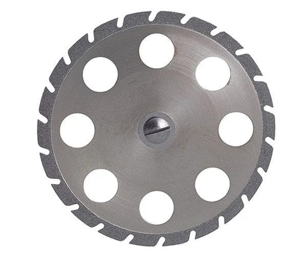 Diamond separating discs for cutting dental arch stumps.