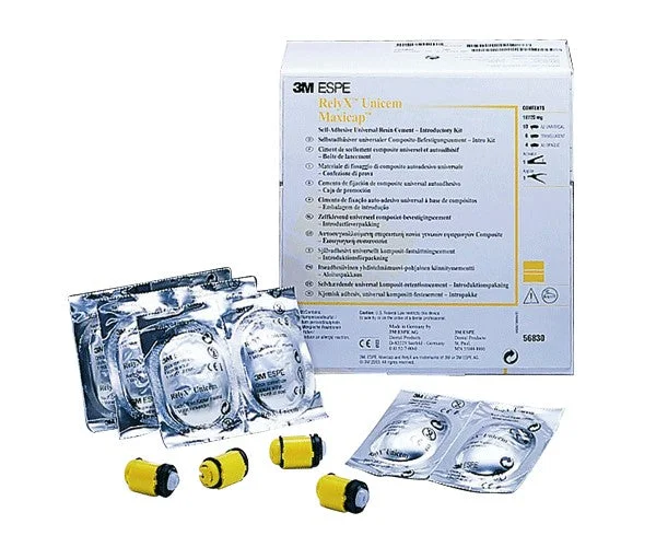The new RelyX Unicem combines the advantages of conventional cement and resin cement. It is a self-adhesive, light-cured, permanent resin cement. It is indicated for all types of indirect ceramic, metal, or resin restorations. The Maxicap™ system is used for cementing bridges (3 to 5 units) or simple cementations where a longer working time is preferred. CONTENTS: 20 capsules: 10 x A2 Universal, 6 x Translucent, 10 x A3 Opaque