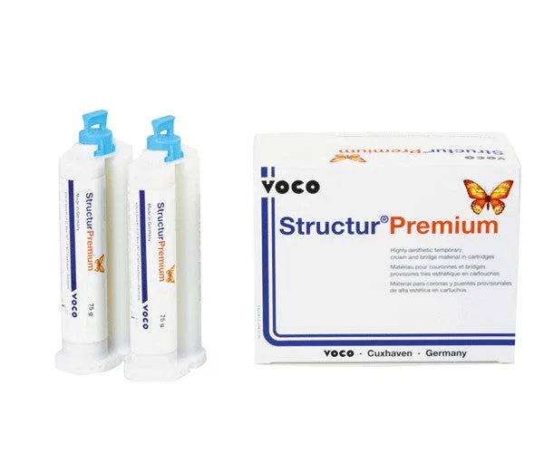 Temporary material for high aesthetic crowns and bridges in cartridges.