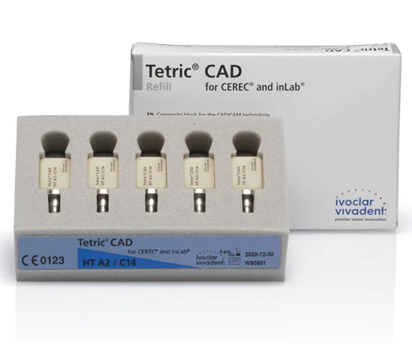 Tetric CAD is an aesthetic composite block designed for the efficient production of single-unit indirect restorations. Based on proven Tetric technology, this new block adds a new option to the range of direct restorative treatments already covered by the Tetric Evo line. Thanks to the material’s pronounced chameleon effect, restorations made from Tetric CAD blend seamlessly with the existing tooth structure, creating a natural aesthetic integration. The block is easy to use thanks to its efficient process. This allows restorations to be quickly milled and polished and then placed using an adhesive technique. This enables the dentist to achieve aesthetic results rapidly.