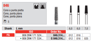 Fresa de Diamante o Diamantada FG.Caja 5 Uds. Forma Troncocónica.