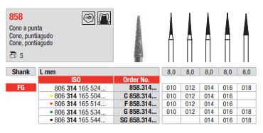 Fresa de Diamante o Diamantada FG.Caja 5 Uds. Forma Cónica/Lanza
