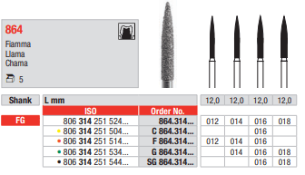 Fresa de Diamante o Diamantada FG.Caja 5 Uds. Forma Llama.