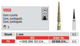 Fresa de Diamante o Diamantada de Alta gama para turbina FG.Caja 5 Uds. Forma Cónica/Lanza.
