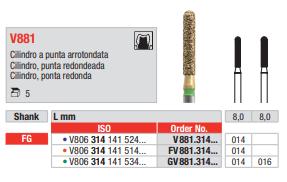 Fresa de Diamante o Diamantada de Alta gama para turbina FG.Caja 5 Uds. Forma Cilíndrica con Punta Redonda..