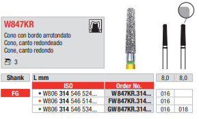 Fresa de Diamante o Diamantada de Alta gama para turbina FG.Caja 3 Uds. Forma Troncocónica.