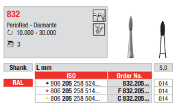 Fresa Periored de Diamante o Diamantada CAL.Caja 3 Uds. Fresa Periodoncia.