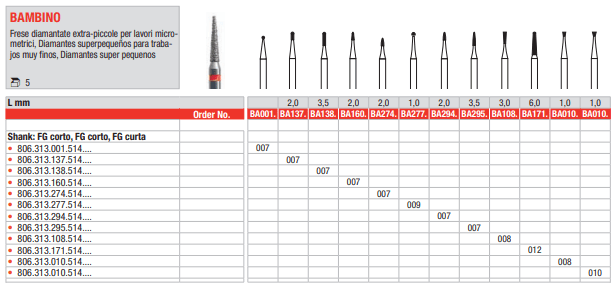 Fresa de Diamante o Diamantada FG.Caja 5 Uds. Forma para niños u odontopediatría.