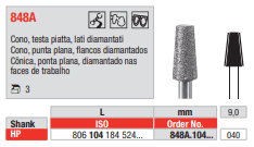 Fresa de Diamante o Diamantada PM.Caja 3 Uds. Forma Troncocónica.