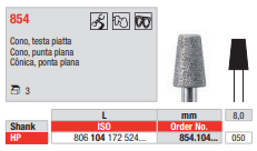 Fresa de Diamante o Diamantada PM.Caja 3 Uds. Forma Troncocónica.