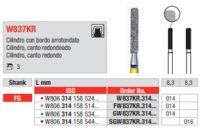 Fresa de Diamante o Diamantada de Alta gama para turbina FG.Caja 3 Uds. Forma Cilíndrica.