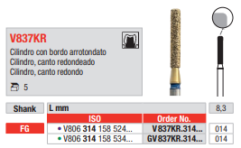 Fresa de Diamante o Diamantada de Alta gama para turbina FG.Caja 5 Uds. Forma Cilíndrica.