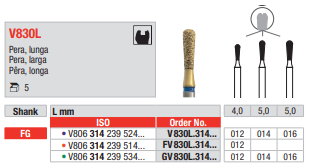 Fresa de Diamante o Diamantada de Alta gama para turbina FG.Caja 5 Uds. Forma Pera.