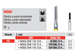 Fresa de Diamante o Diamantada de Alta gama para turbina FG.Caja 3 Uds. Forma Cilíndrica con Punta Redonda.