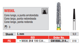 Fresa de Diamante o Diamantada de Alta gama para turbina FG.Caja 3 Uds. Forma Troncocónica con Punta Roma.